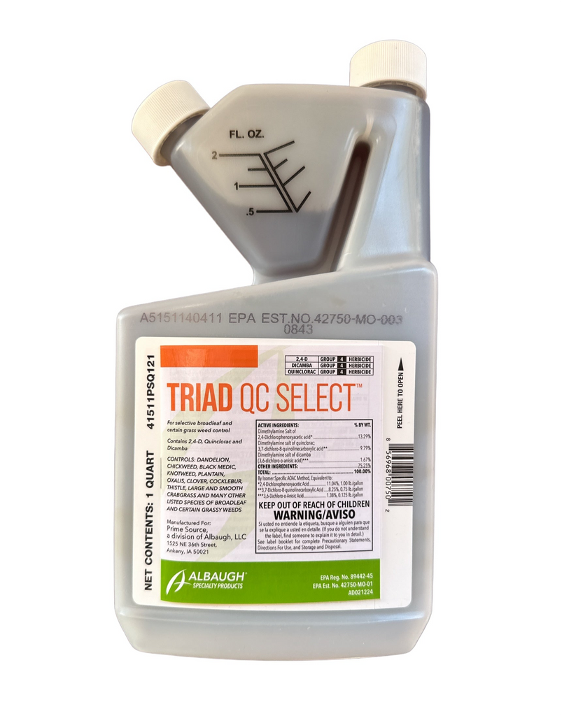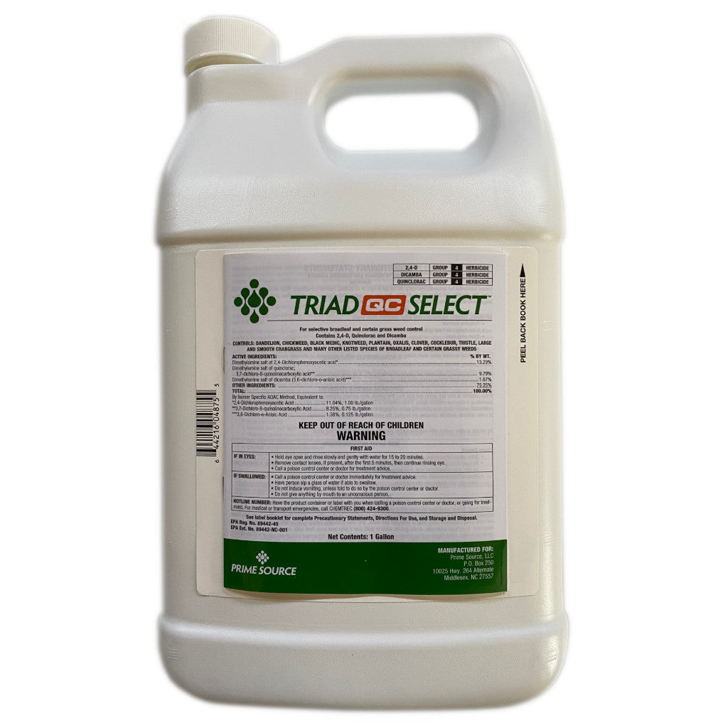 Prime Source, LLCTriad QC Select™ provides post-emergent control of a comprehensive list of both grassy and broadleaf weeds. Can be used on residential and non-residential lawns and turf, athletic fields, roadsides, parks, golf turf (except tees, greens and collars).