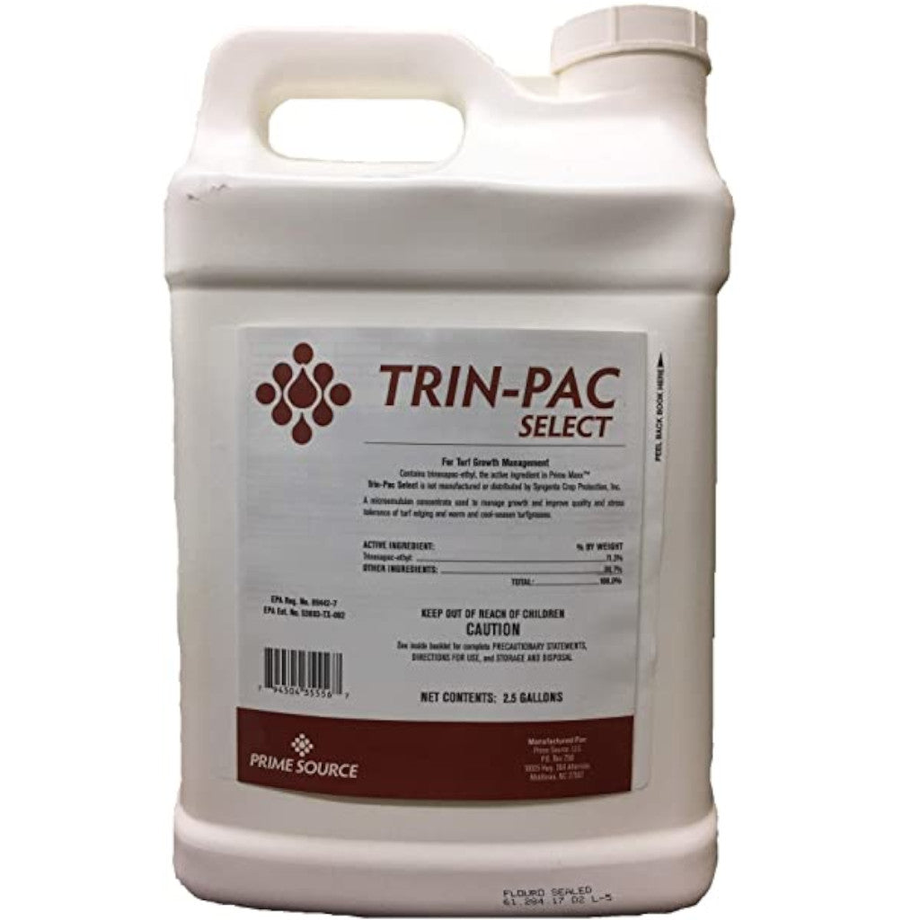 Prime Source, LLCTrin-Pac Select™ is a plant growth regulator that slows the top growth of the plant. By limiting the vertical growth, the energy in the plant is redirected to strengthening the root structure as well as prompting greater lateral growth. Using Trin-Pac Select will result in a reduction in the frequency of mowing and the amount of grass clippings, while increasing the color, quality and density of the turf. Rainfast within one hour after application and is effective only through absorption and not by plant uptake through the soil. As such, the use of a “spreader” may be beneficial.